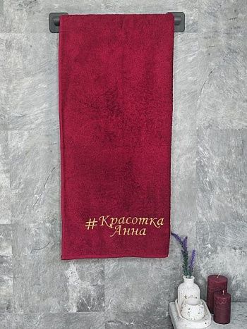 Полотенце с вышивкой 70*140 "Красотка Анна" бордо