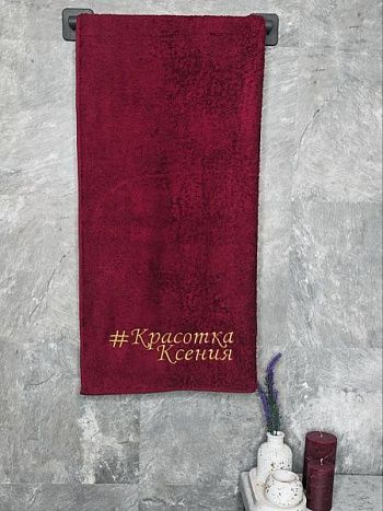 Полотенце с вышивкой 70*140 "Красотка Ксения" бордо