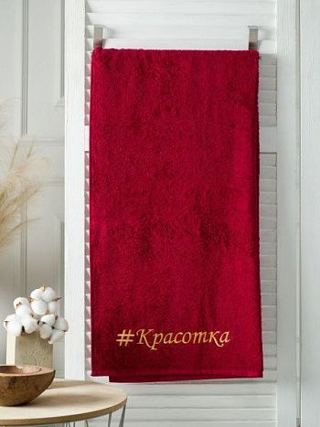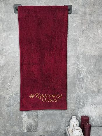 Полотенце с вышивкой 70*140 "Красотка Ольга" бордо