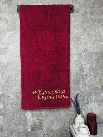 Полотенце с вышивкой 70*140 "Красотка Екатерина" бордо