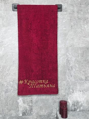 Полотенце с вышивкой 70*140 "Красотка Татьяна" бордо