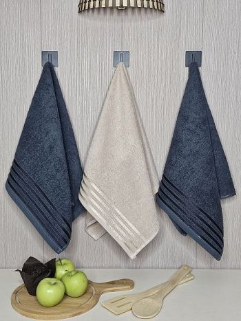 Набор махровых полотенец 3 шт (40*70) синий, полоса