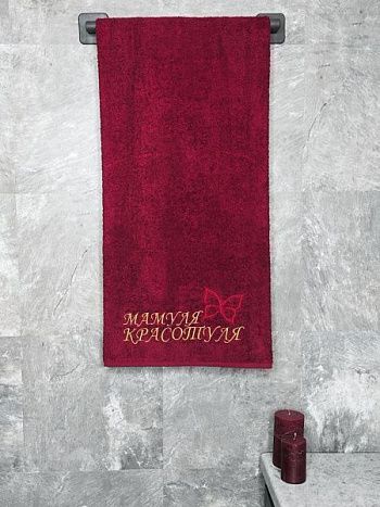 Полотенце с вышивкой 70*140 "Мамуля красотуля" бордо