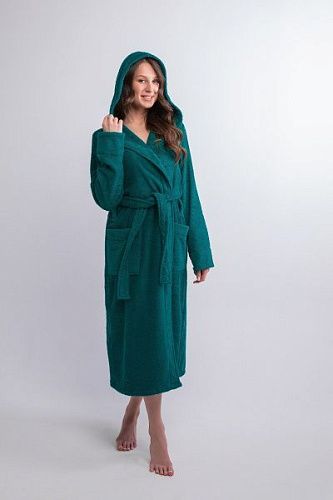 Халат махровый женский с капюшоном изумруд
