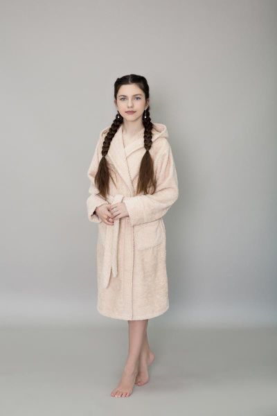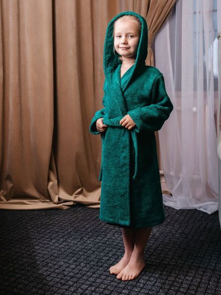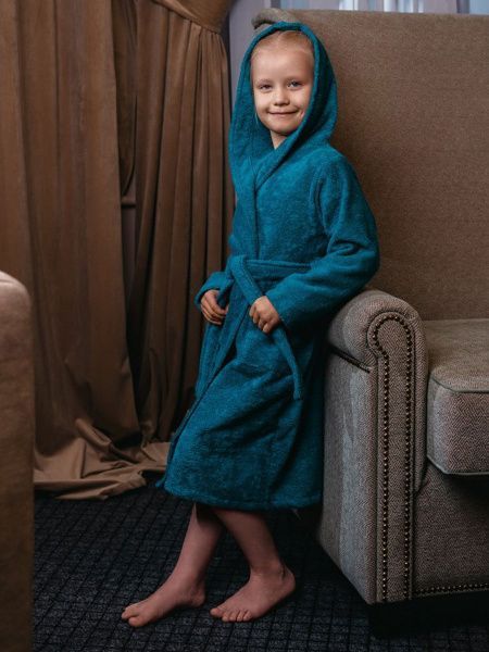 Махровый халат "ЛАПУШКА" с капюшоном из бязи, лазурный, ушки-зайчики