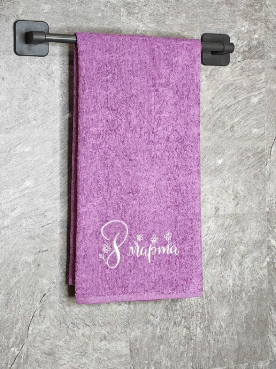 Полотенце с вышивкой 50*90 "8 марта" сиреневый