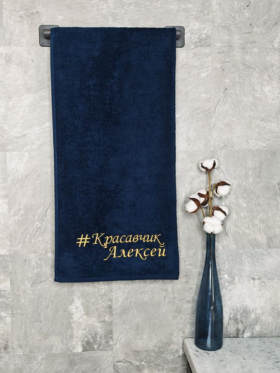Полотенце с вышивкой 70*140 "красавчик" Алексей темно-синее