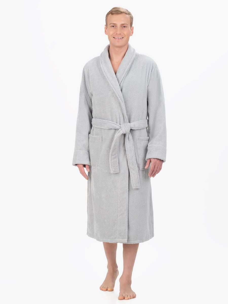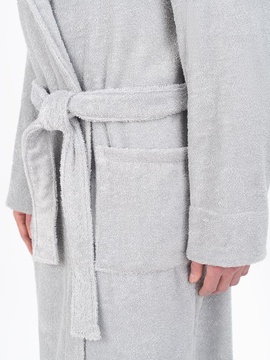 Модель халата с поясом позволяет ему быть универсальным и подходит к любому типу телосложения, скрывая недостатки и подчеркивая достоинства фигуры. Наличие карманов делает его практичным для ношения дома, в бане или сауне, а также на отдыхе.