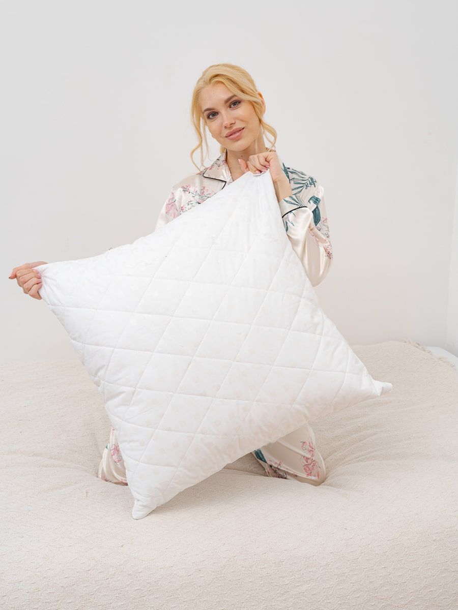 Подушка "Сила природы" с лузгой гречихи стежка бамбуковое волокно, белая