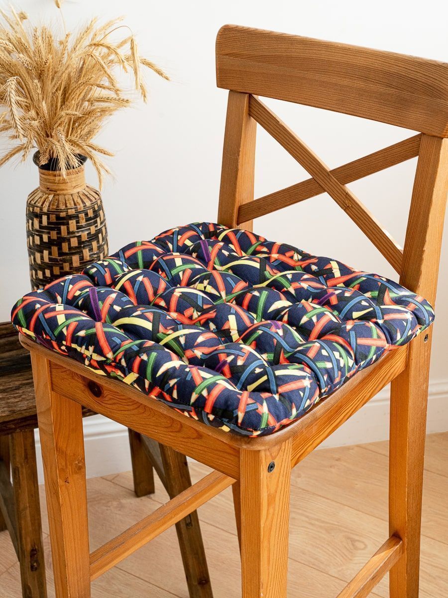 Подушка на стул в красочном дизайне создана специально для детей, преимущественно школьного возраста, так как при выполнении домашних заданий им сложно сохранять правильную осанку. Наполнитель из лузги гречихи обладает ортопедическими свойствами и придает подушке необходимую жесткость. Такая подушка за счет своей формы и особенностей наполнителя очень полезна для правильного развития опорно-двигательного аппарата, хорошего кровообращения при долгом сидении.