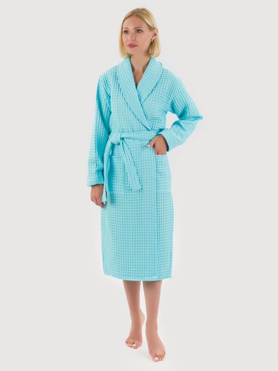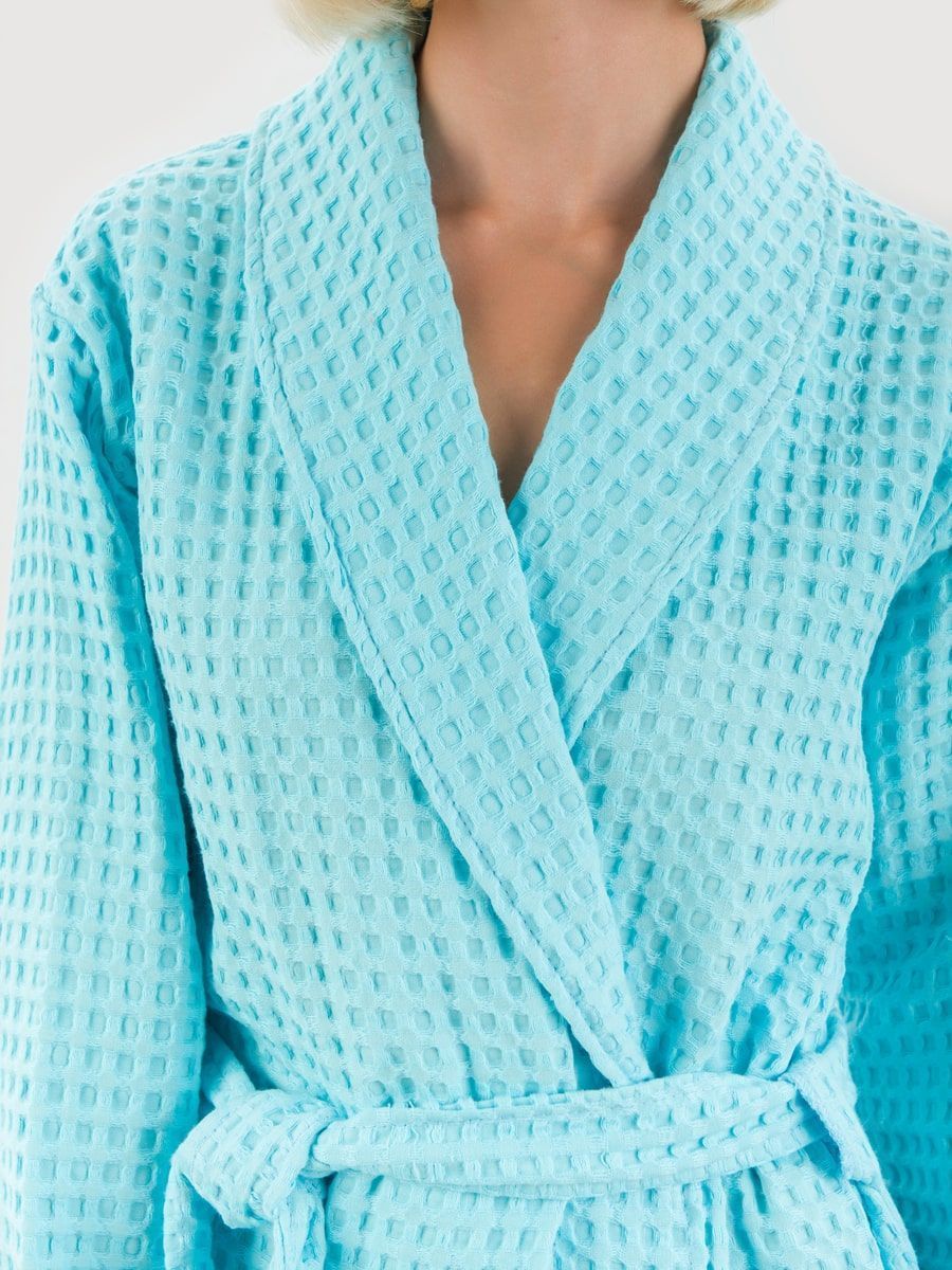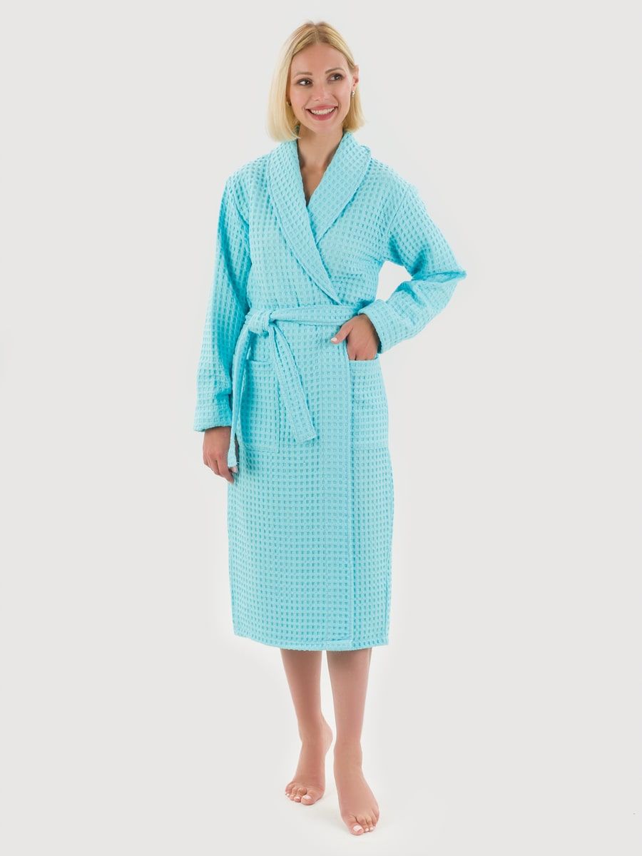 Вафельный халат «Комфорт» в крупную клетку с карманами и пояском. Благодаря высочайшему качеству ткани, халат не растягивается, очень прочен и обеспечивает максимум комфорта.