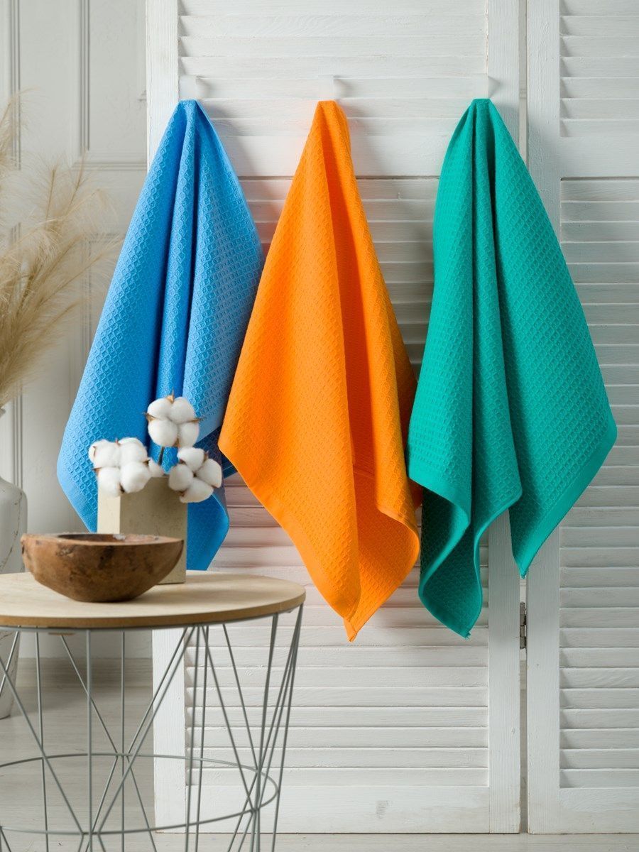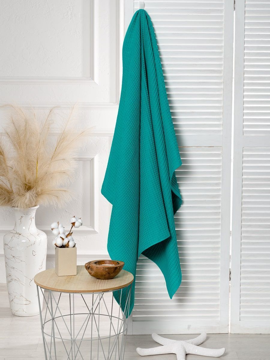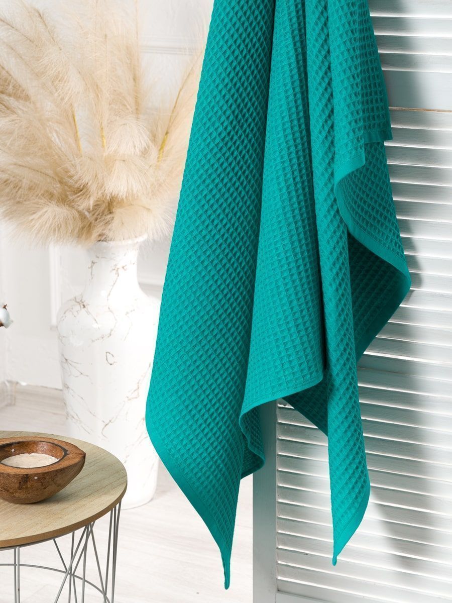 Полотенца изготовлены из вафельной ткани высокого качества с рельефным безворсовым плетением в виде крупной мягкой клетки. Эти полотенца намного толще и пышнее привычных вафельных полотенец.  Благодаря особому плетению и крупной клетке ткань получилась мягкой и очень воздушной. При соприкосновении с кожей она не вызывает раздражения или неприятных ощущений. Нежное как облачко, это полотенце идеально подойдет малышам и людям, которые ценят свой комфорт. Вафельное полотно произведено из 100% хлопка на современном  итальянском оборудовании в Республике Узбекистан. Оно обладает высокой прочностью и износостойкостью, что обеспечивает изделиям из него долгий срок службы и практичность в использовании. Даже после многократных стирок изделие не линяет, не деформируется и полностью сохраняет свои свойства.