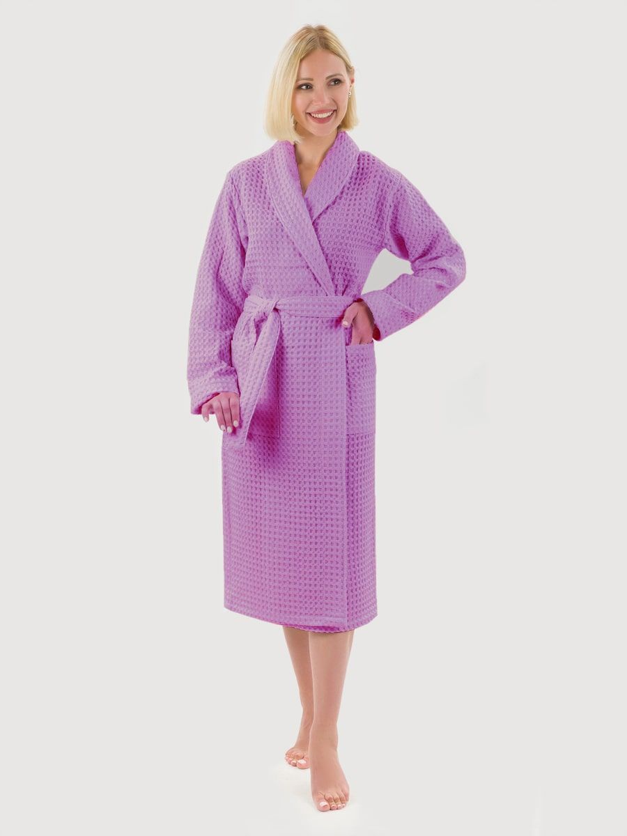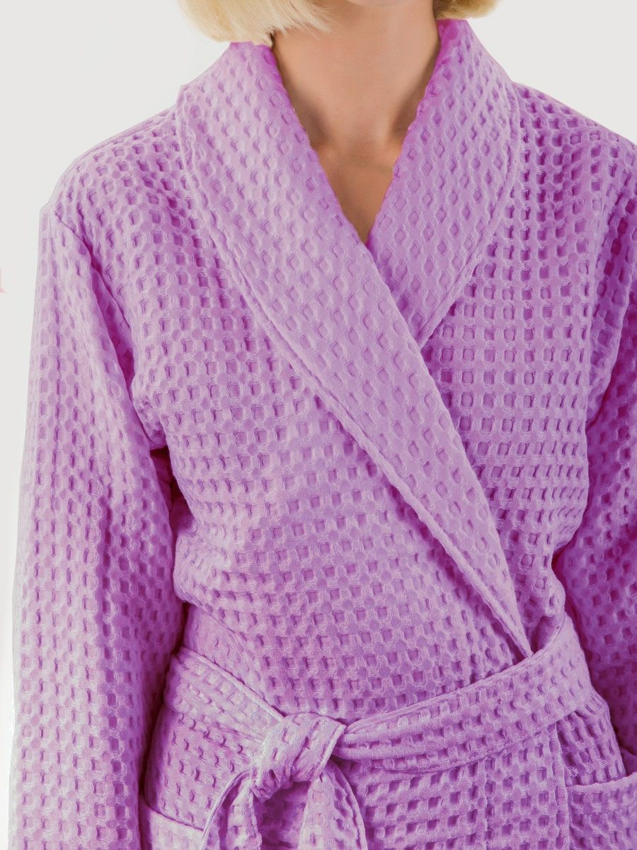 Вафельный халат «Комфорт» в крупную клетку с карманами и пояском. Благодаря высочайшему качеству ткани, халат не растягивается, очень прочен и обеспечивает максимум комфорта.