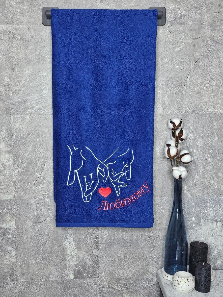 Полотенце с вышивкой 70*140 "любимому" синее POL/любимому2