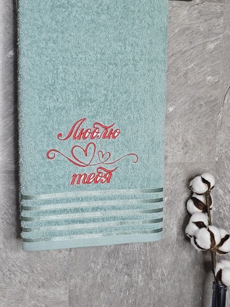 Полотенце с вышивкой 50*90 "люблю тебя" зеленое