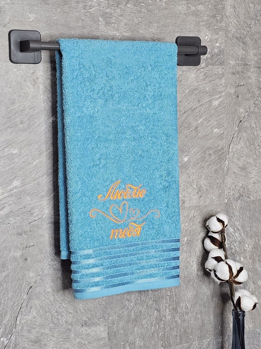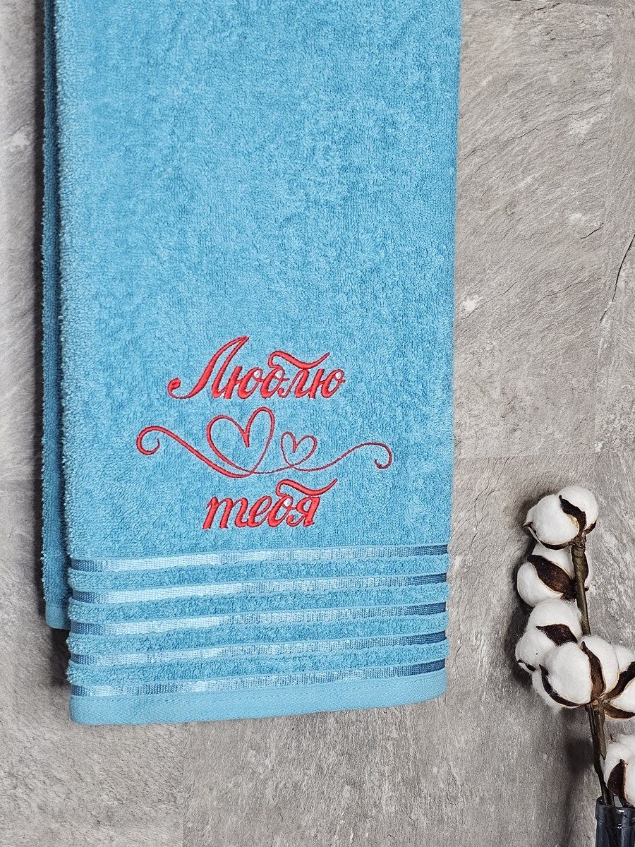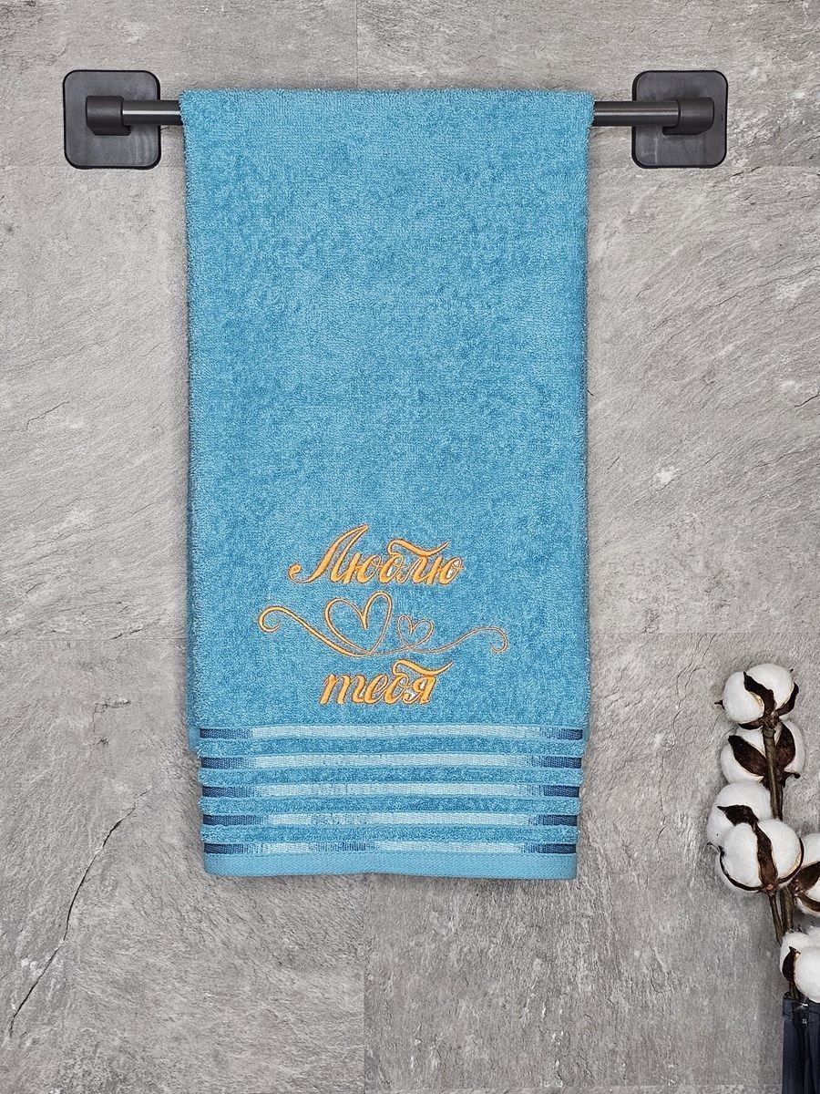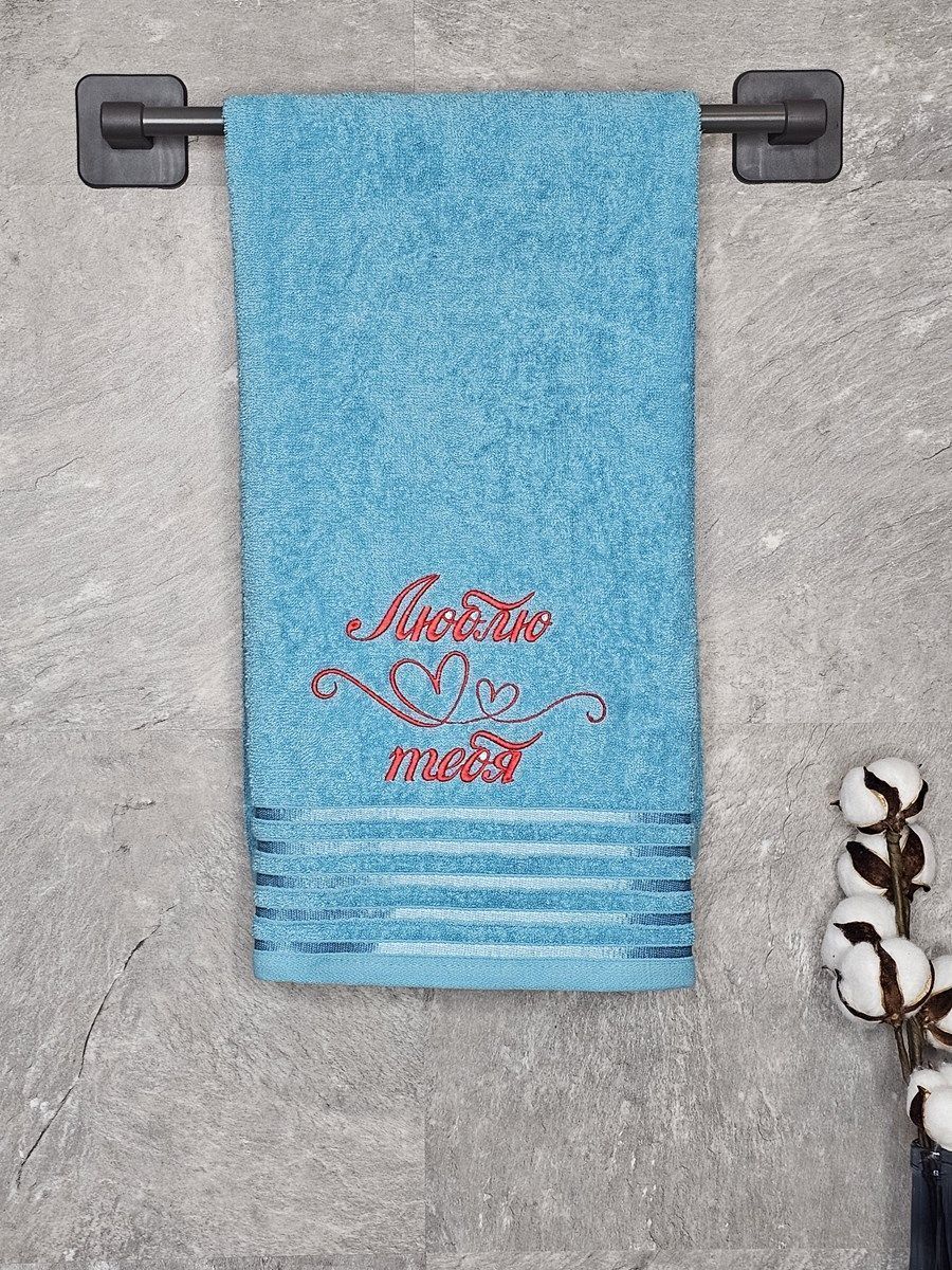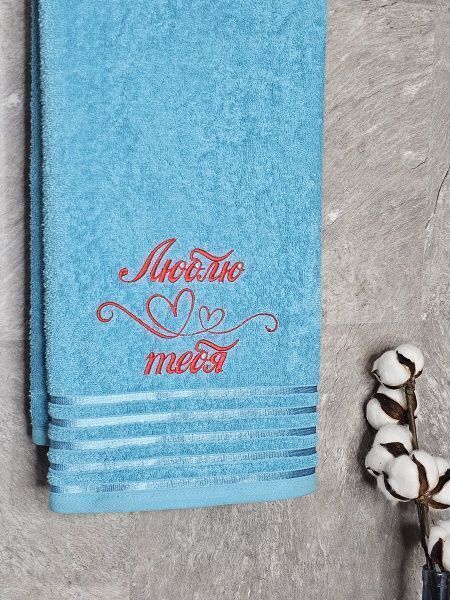 Полотенце с вышивкой 50*90 "люблю тебя" синее