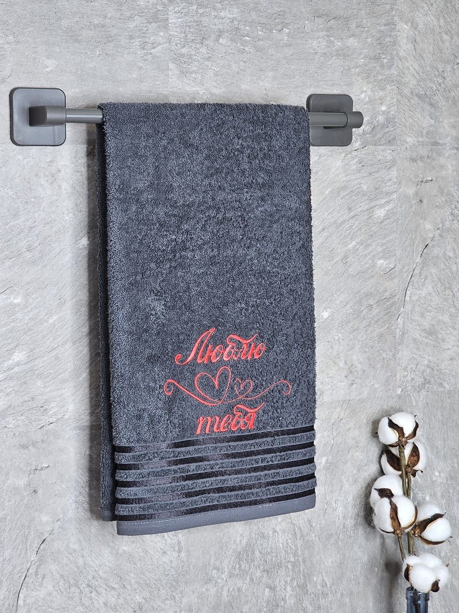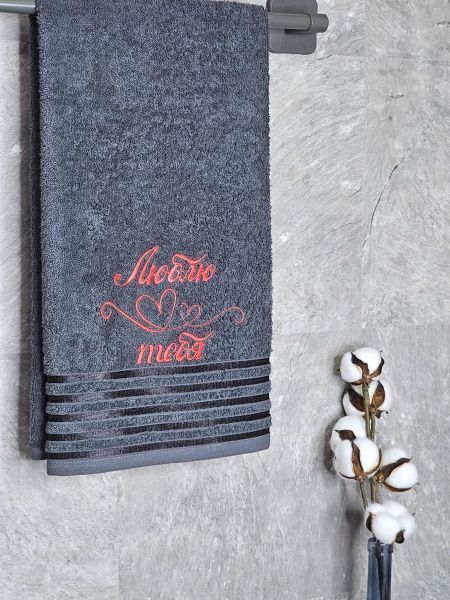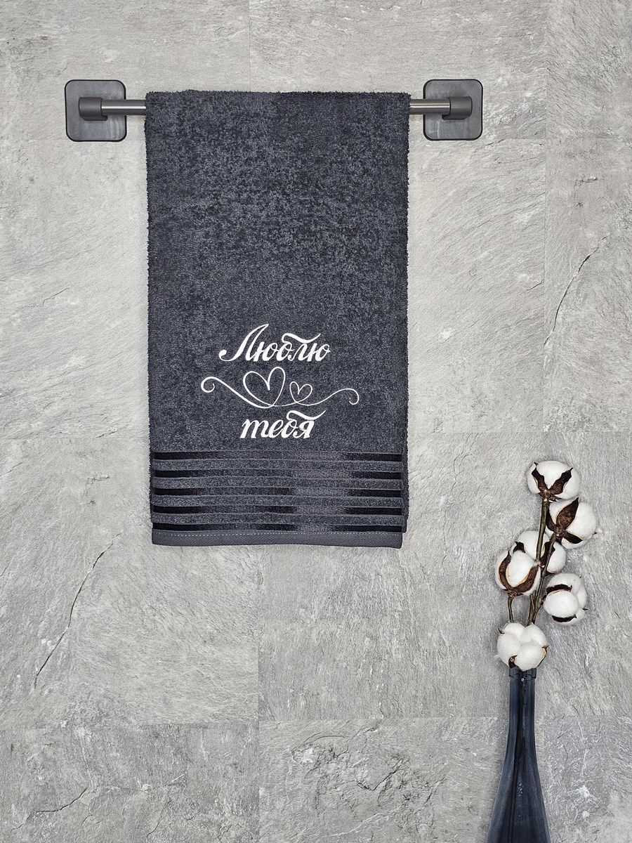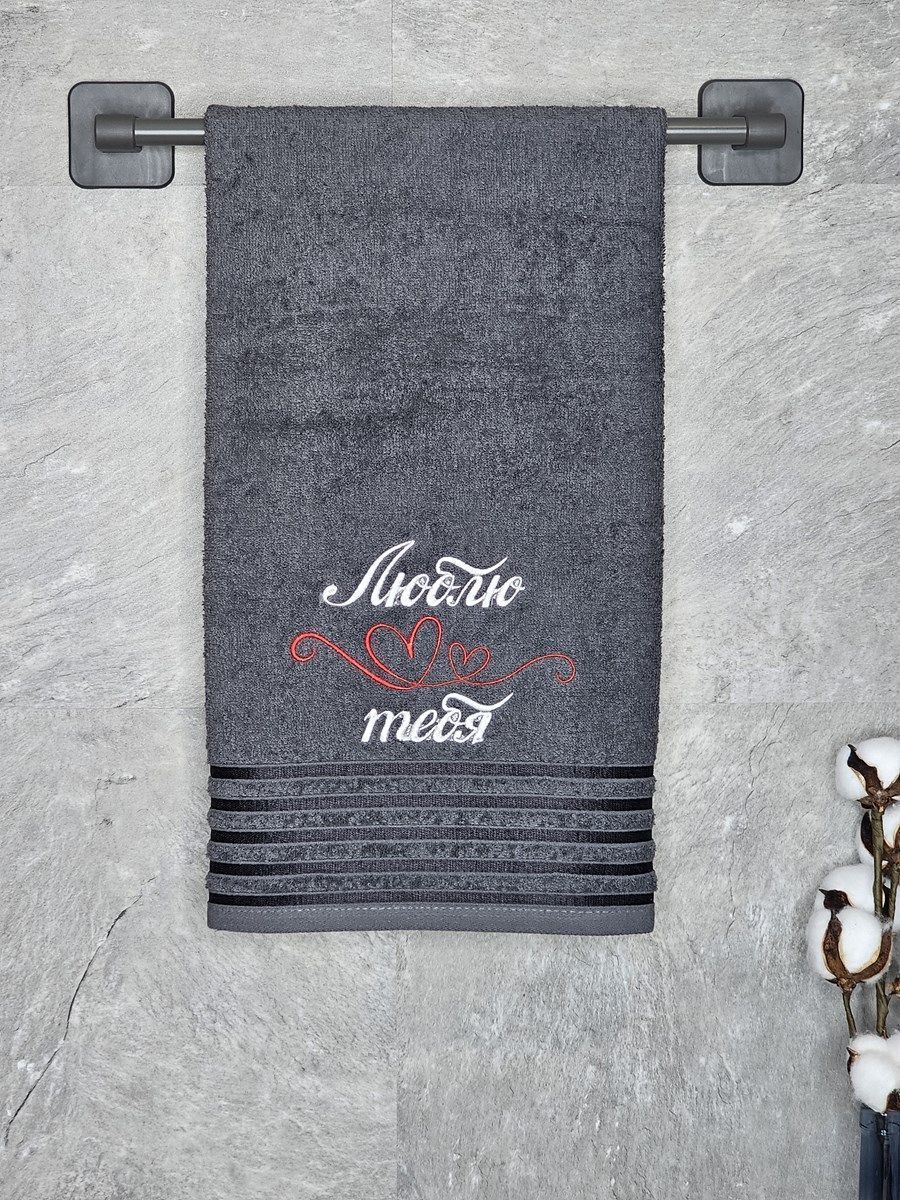 Полотенце с вышивкой 50*90 "люблю тебя" темно-серое