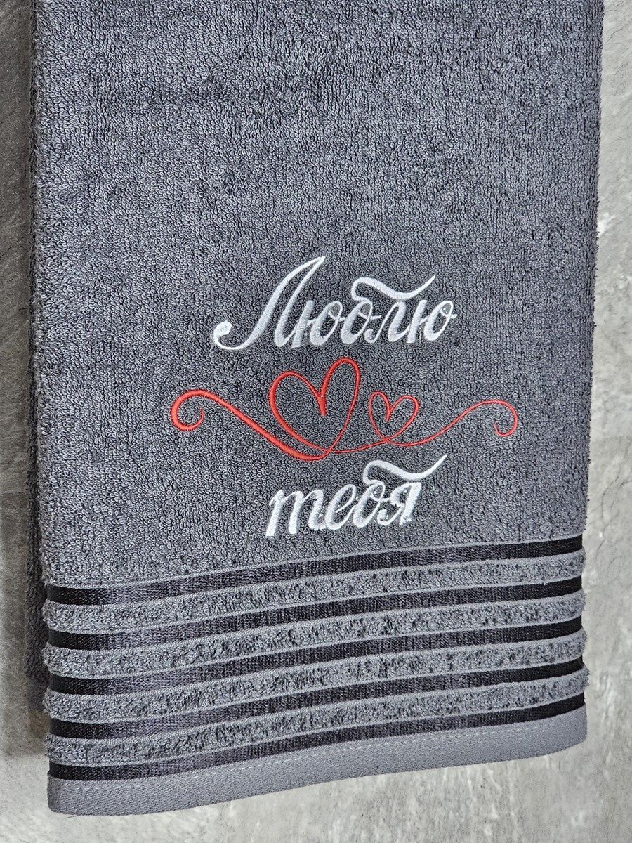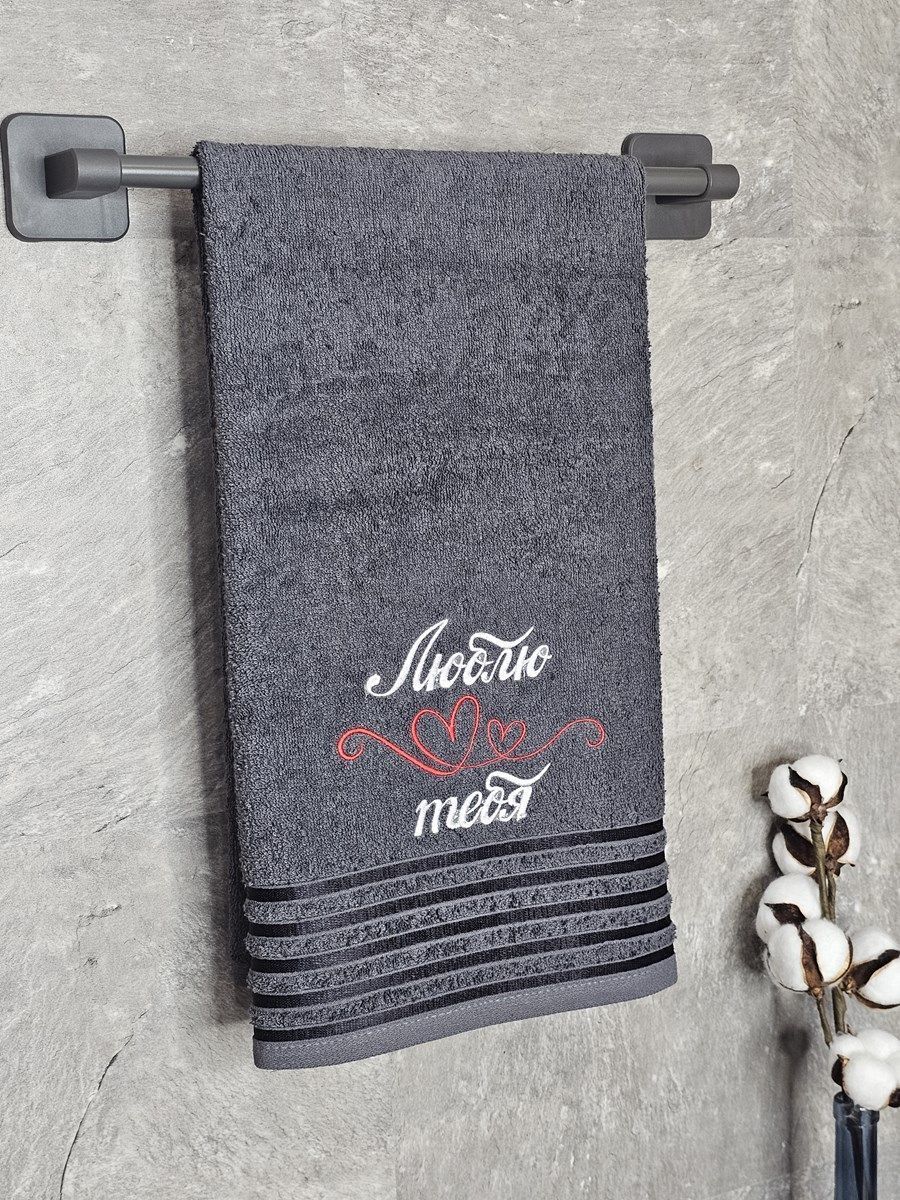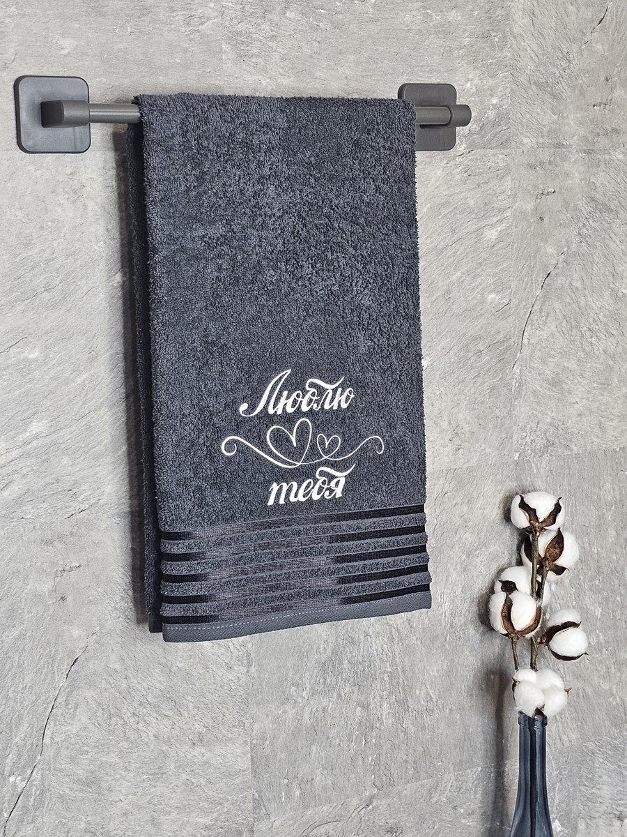 Полотенце с вышивкой 50*90 "люблю тебя" темно-серое