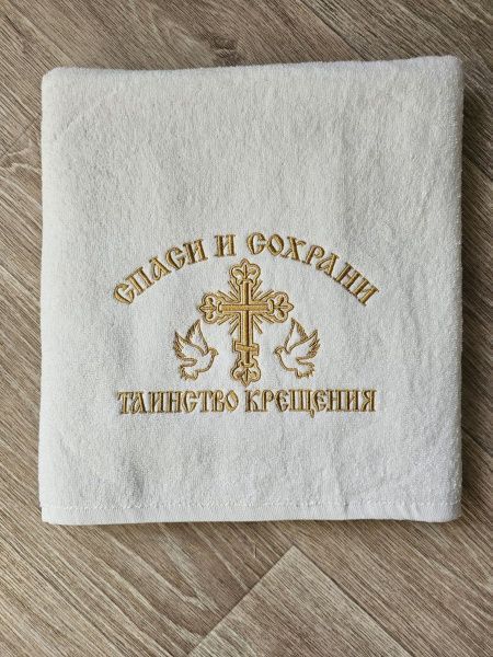 Полотенце с вышивкой 70*140 "спаси и сохрани" белое (заказ от 10шт.) POL/сохрани
