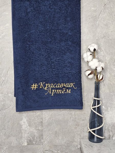 Полотенце с вышивкой 70*140 "красавчик" Артем темно-синее POL/красавчикАртем/2122