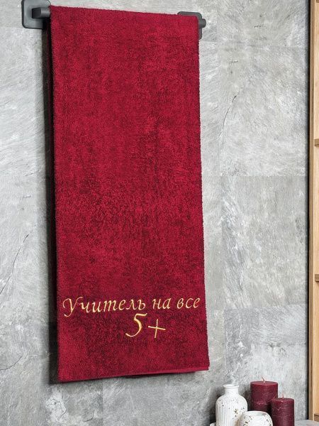 Полотенце с вышивкой 70*140 "Учитель 5+" бордо POL/учитель_бордо